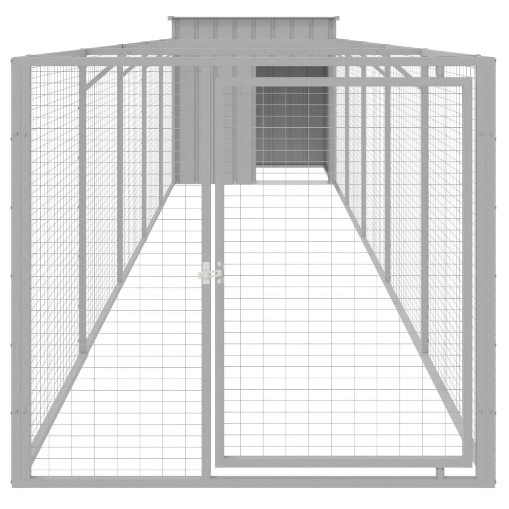 Dog House with Run Light Gray 43.3"x239.8"x43.3" Galvanized Steel