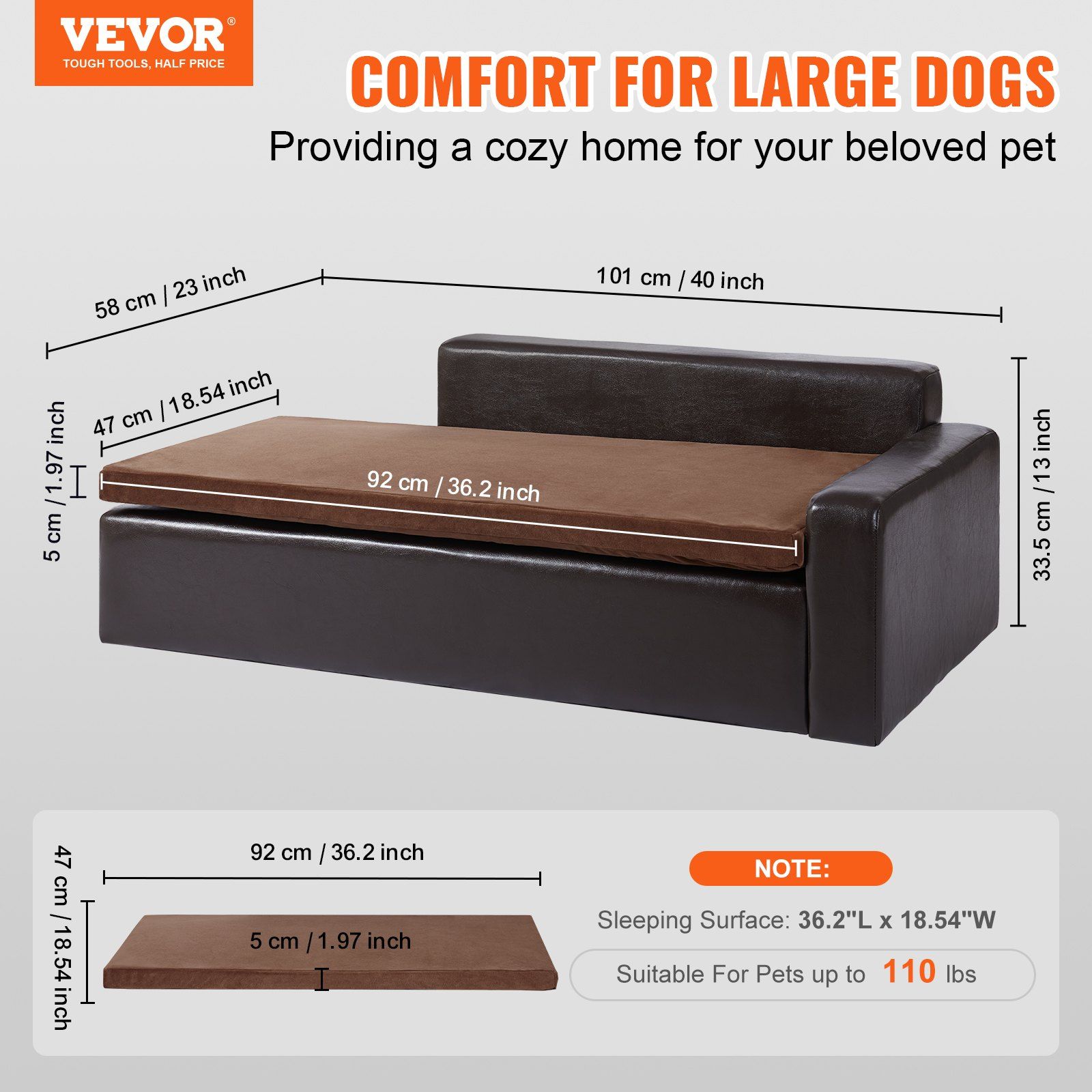 VEVOR Pet Sofa, Dog Couch for Large-Sized Dogs and Cats, Soft Leather Dog Sofa Bed, 110 lbs Loading Cat Sofa, Black